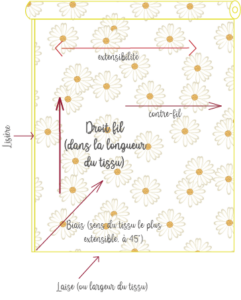 dessous, le fil du dessus ne doit se voir que du dessus, pareil pour le fil du dessous. (Si votre fil fait des boucles en dessous, c’est que vous devez revoir l’enfilage supérieur en veillant à bien suivre le chemin ; si c’est le fil du dessus qui n’est pas correct, revoyez le bobinage de votre cannette (il doit être régulier de haut en bas de la cannette). - Je place mes tissus endroit contre endroit.
